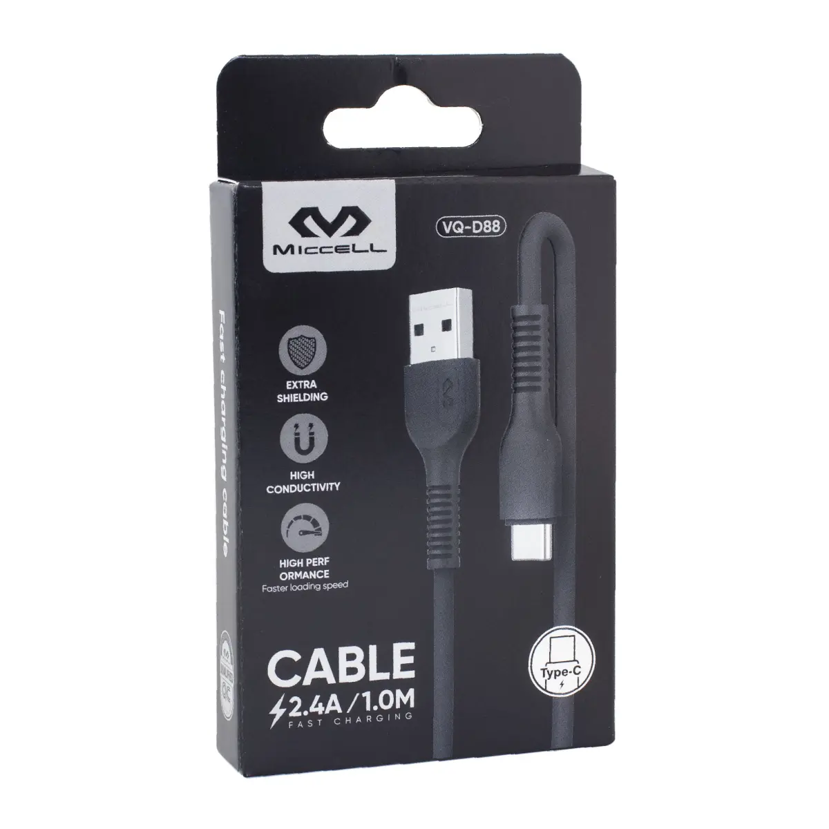 Cable Tipo C Miccell VQ-D88 2,4A 1,0 m Negro