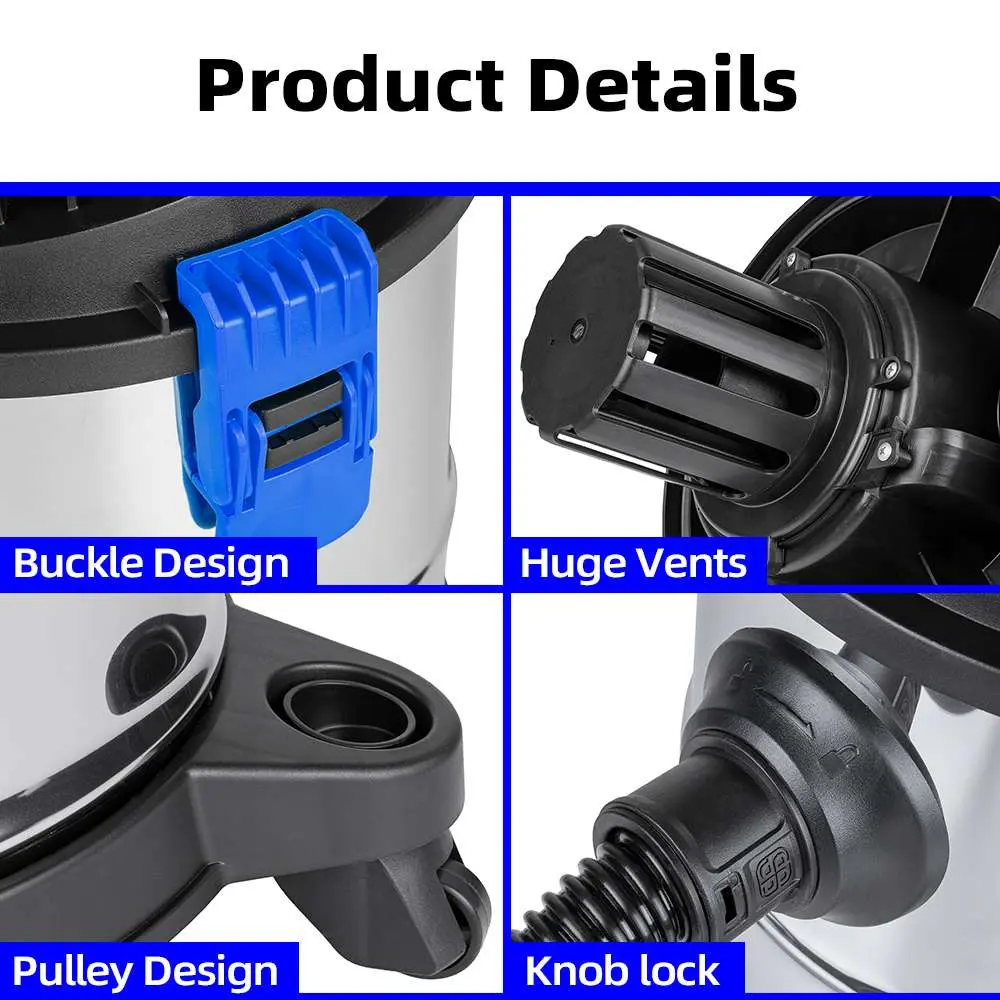 Potente, práctica y diseñada para un rendimiento duradero, esta aspiradora profesional es ideal para mantener espacios impecables en oficinas, talleres y hogares. Su capacidad de 20 litros asegura mayor autonomía en cada uso, mientras que su construcción robusta y sistema de succión eficiente garantizan resultados superiores en la limpieza diaria o intensiva.