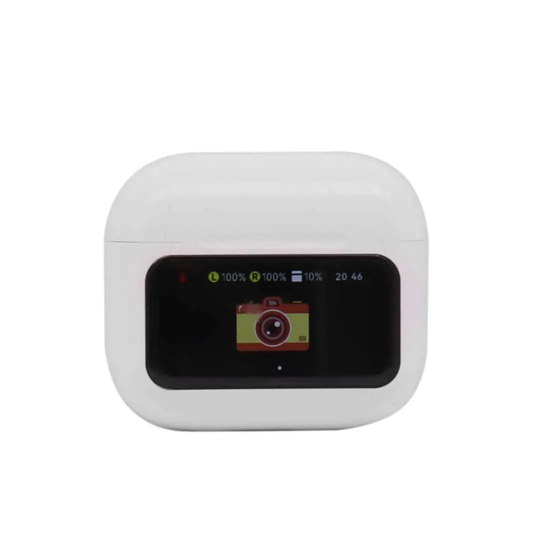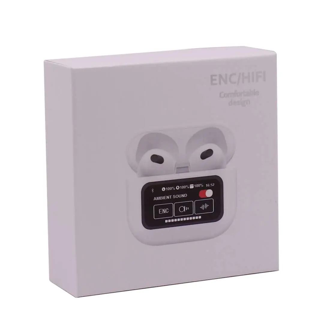 Los Auriculares Inalambricos Con Display Pro Blanco ofrecen una experiencia moderna y funcional gracias a su conectividad Bluetooth y su base de carga con display táctil. Permiten gestionar múltiples funciones como música, volumen, cronómetro y modos de ambiente, además de contar con cancelación activa de ruido (ANC) y prácticos indicadores de batería tanto en los auriculares como en la base, haciendo su uso intuitivo y cómodo en cualquier situación.
