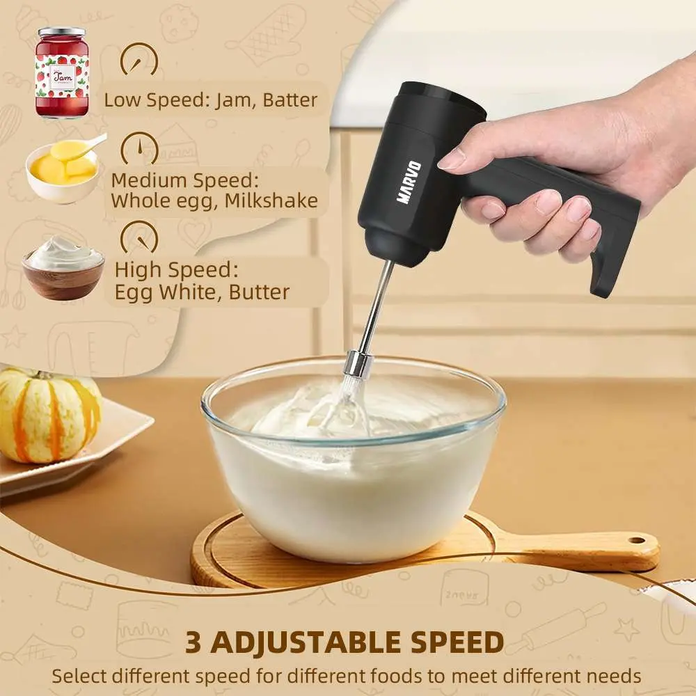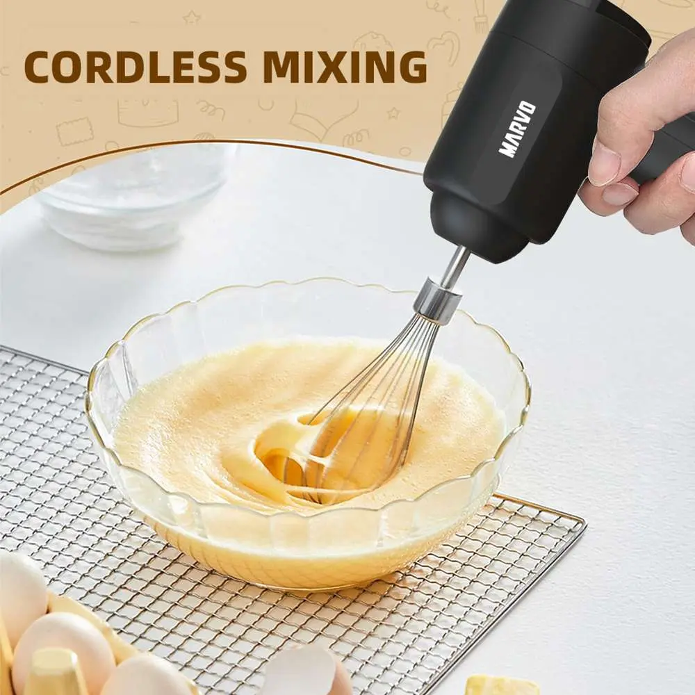 Práctica, ligera y eficiente, esta batidora de mano inalámbrica es la aliada perfecta para preparar mezclas rápidas y homogéneas sin cables que limiten tus movimientos. Su diseño ergonómico y batería recargable brindan comodidad y versatilidad en la cocina, ofreciendo un desempeño confiable para todo tipo de recetas.
