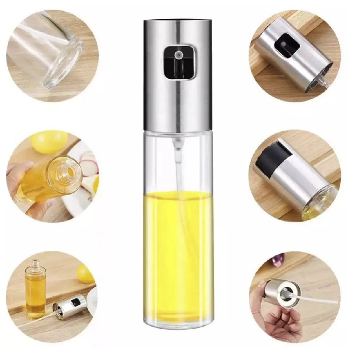 Cociná de forma más saludable y práctica con la Botella Dispensador en Spray para Aceite y Vinagre 100 ml. Su sistema de pulverización permite aplicar la cantidad justa de aceite o vinagre, logrando preparaciones más ligeras y evitando excesos. Compacta, elegante y fácil de usar, es perfecta para cocinar, condimentar ensaladas o dar el toque final a tus platos, todo con un diseño moderno que combina estilo y funcionalidad.