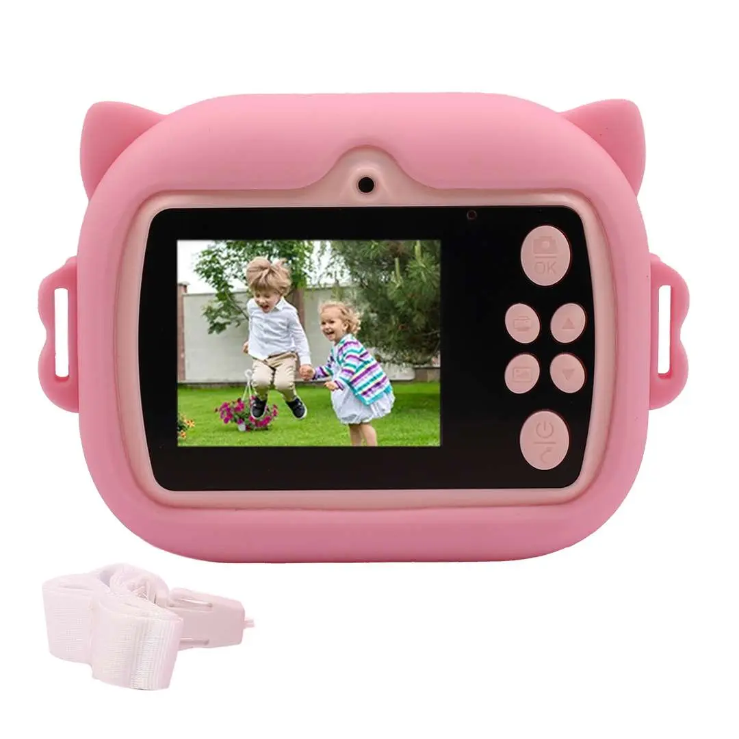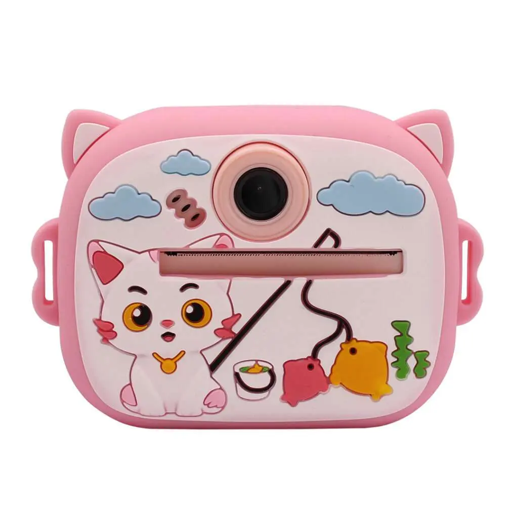 Cámara instantánea diseñada especialmente para niños, con un adorable diseño de gatito rosado. Permite sacar fotos al instante, guardar recuerdos y estimular la creatividad de los más pequeños gracias a su uso simple y su estructura resistente.