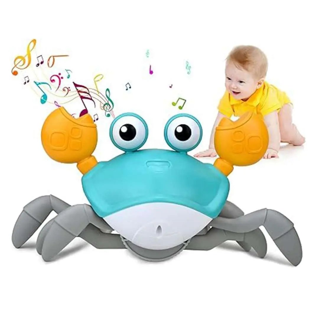 Cangrejo interactivo ideal para fomentar el movimiento y la coordinación en niños. Se desplaza automáticamente, esquiva obstáculos, baila y enciende luces, logrando captar la atención de los más pequeños y convirtiéndose en un juguete súper entretenido.