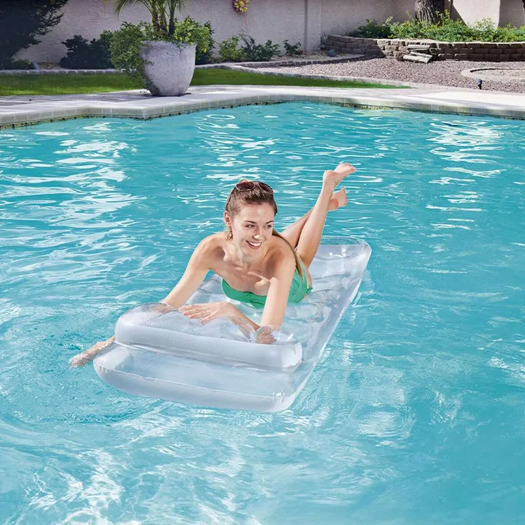 Diseñado para el ejercicio y la diversión al aire libre, la colchoneta inflable de aire Bestway divierte tanto a niños como adultos.La colchoneta de aire cuenta con una cabecera transparente y dos cámaras de aire para mayor flotabilidad.
