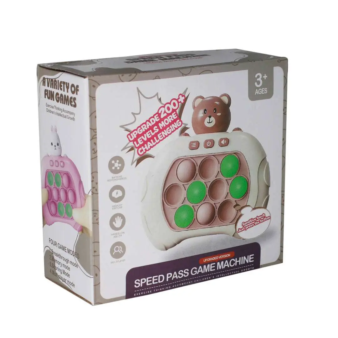 Una divertida consola estilo pop it con forma de oso, ideal para estimular la concentración y aliviar el estrés mientras los chicos juegan y siguen las secuencias de luces y sonidos. ¡Compacta, colorida y súper entretenida!