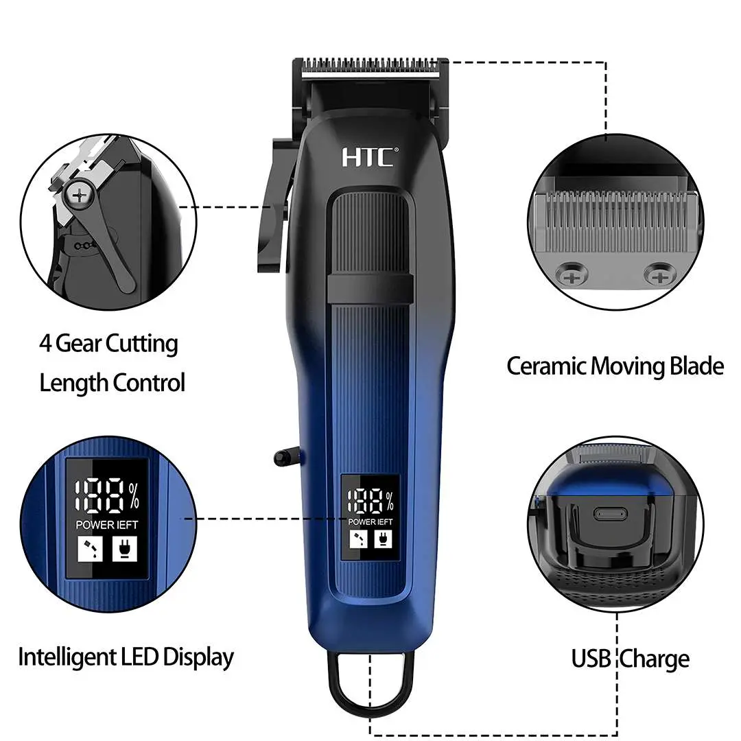 Corta pelo inalambrica HTC AT-708 USB azul con negro