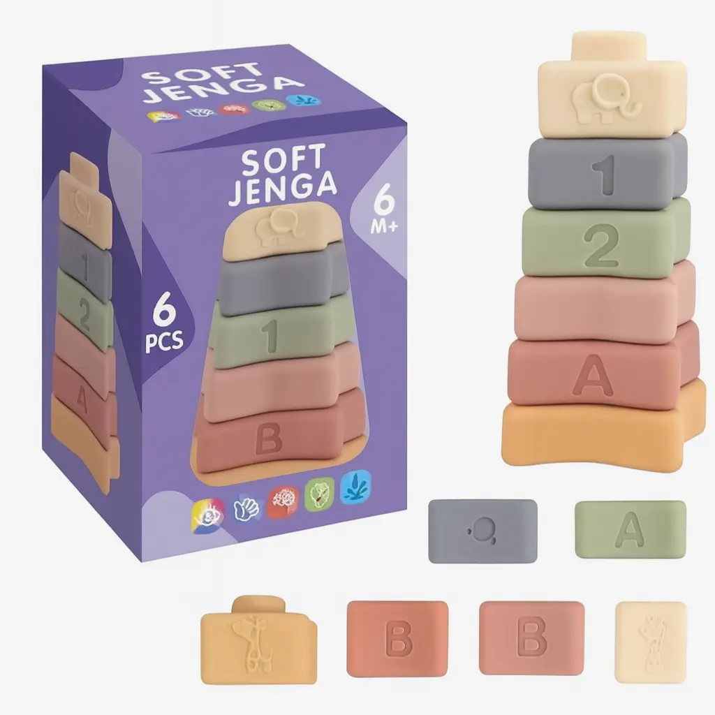 Un juguete didáctico ideal para bebés y niños pequeños. Sus estrellas de silicona suave y segura permiten apilar, encastrar y explorar texturas, ayudando al desarrollo sensorial, la motricidad fina y la coordinación mano-ojo.