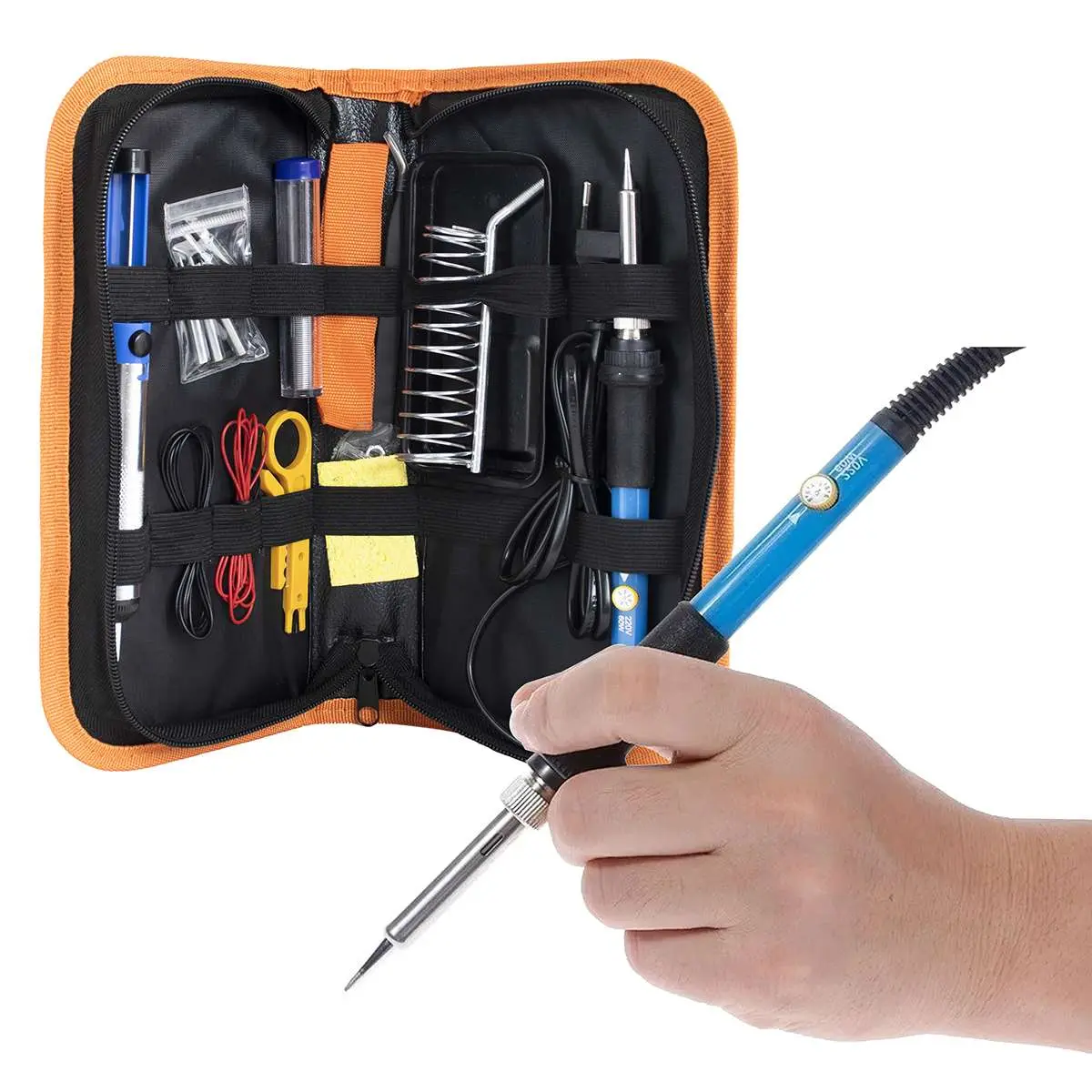 Incluye varios accesorios como puntas intercambiables, soporte, estaño y herramientas auxiliares