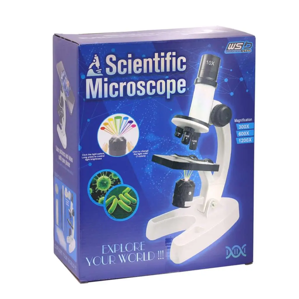Microscopio educativo pensado para que los niños exploren el mundo microscópico de forma sencilla y divertida. Su diseño giratorio 360° facilita la observación desde cualquier ángulo y sus lentes permiten aumentos de hasta 1200x, ideal para iniciarse en la ciencia.