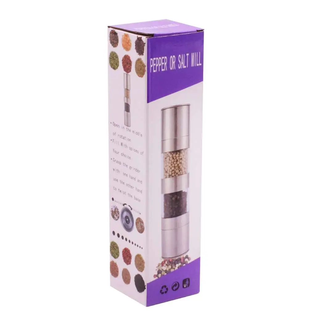 Llevá tus condimentos al siguiente nivel con este molinillo doble de 22 cm, ideal para sal y pimienta o especias secas. Su estructura de acero inoxidable asegura durabilidad, mientras que su diseño permite ajustar el grosor del molido al gusto. Perfecto para mesas, cocinas o como regalo elegante.